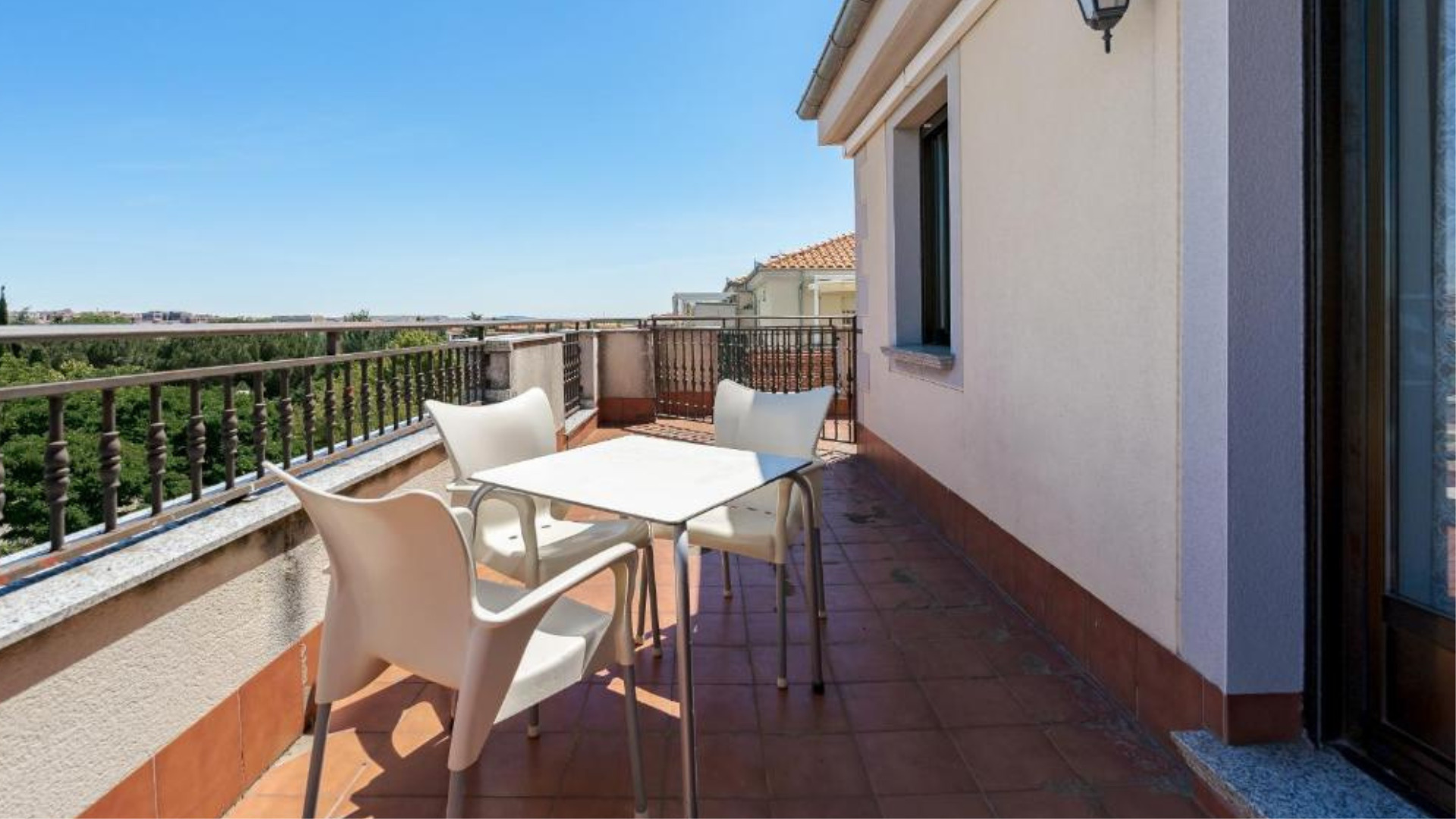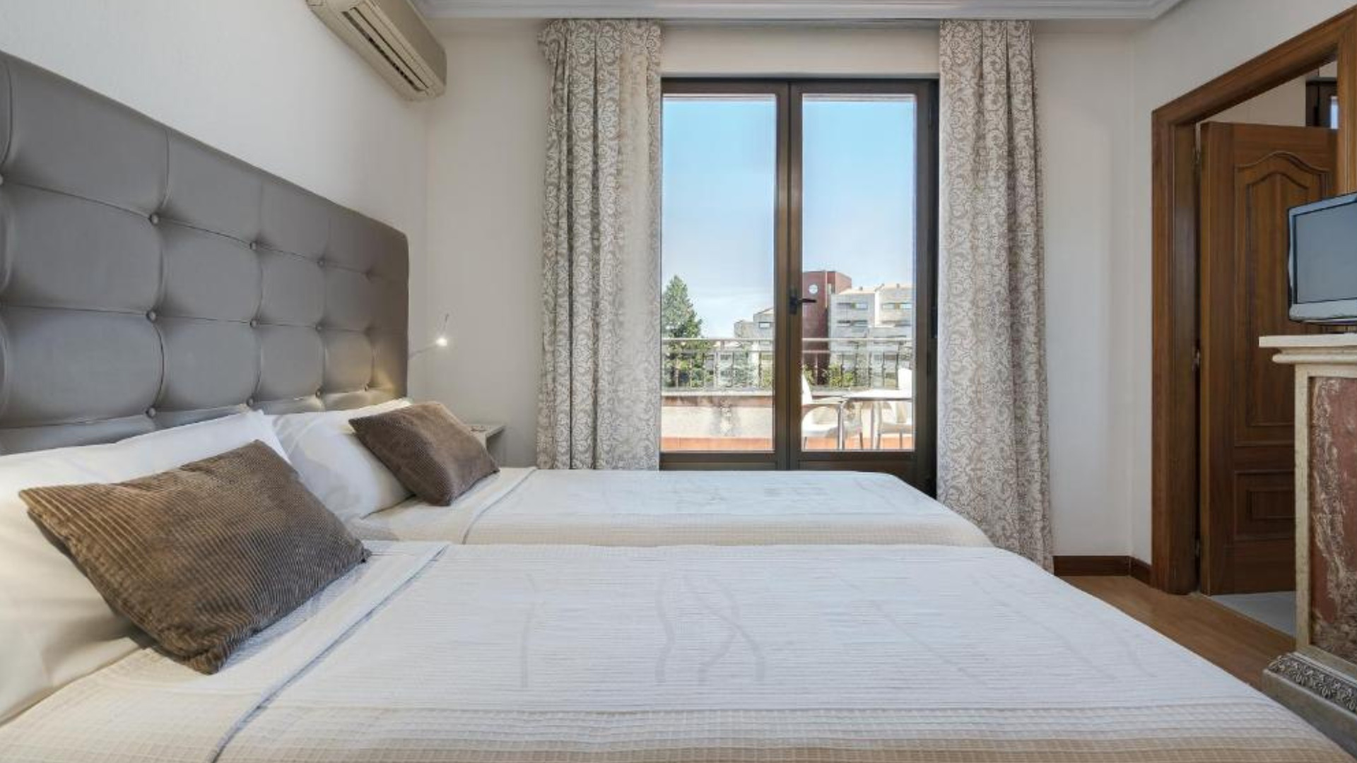 Double room with terrace in Salamanca, featuring flexible bedding, a private terrace, and a fully equipped bathroom for a relaxing stay.